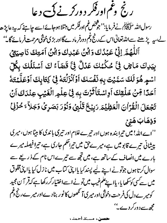 For grief, problems and discomfortغم، پریشانی اور گهبراهٹ کی دعا